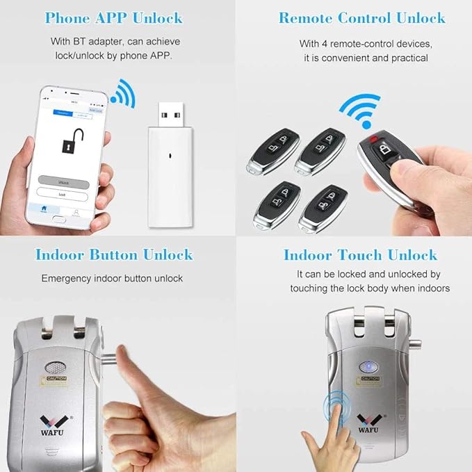 La Cerradura Inalámbrica AWKAQU- 010 ofrece seguridad avanzada con su diseño invisible y control remoto a través de la aplicación iOS y Android. Con un elegante acabado plateado y un intuitivo diseño táctil, es la elección perfecta para un acceso seguro y moderno.